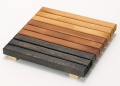 天然木ならではの高級感や色、厚みをお試し下さい。塗装は写真手前よりブラウン、チーク、パインとなっています。