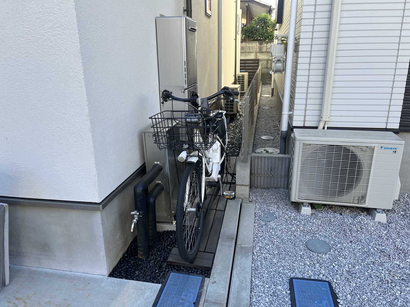 自転車駐輪も、ウッドデッキの上だとスムーズにできそうですね。少し場を整えることで、空間の有効活用につながる良い例をいただいたと思います。大変参考になりました。