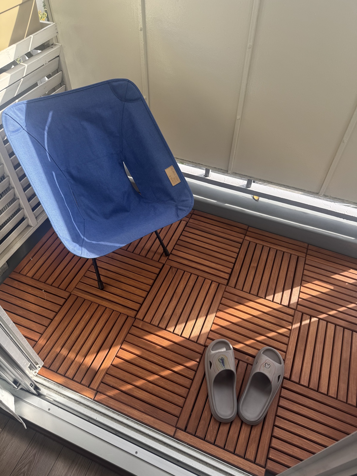 (M様より)ベランダに綺麗にすることができました!以前は突起がついた同じようなものを敷いてたんですけど、ベランダに突起の穴が空いてしまうことがあったので、すのこスタイルだとすごくいいです!