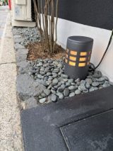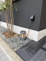 黒い壁、敷石ともぴったりの色合いです。信楽焼ガーデンライトは、ひとつひとつ職人が手作りしておりますので、大量生産品にはない味わいも、感じていただくことができると思います。