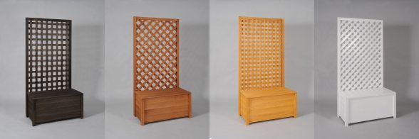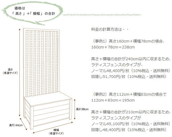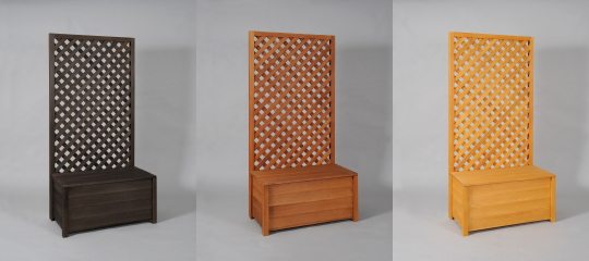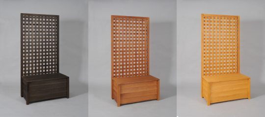 収納ボックス付きラティスフェンス匠は、簡単自立で目隠し。普段はベンチに、中は物置に、空間の有効活用にもおすすめ。 高さ・横幅とも1cm単位でサイズオーダー可能なので、統一感ある空間作りが可能。