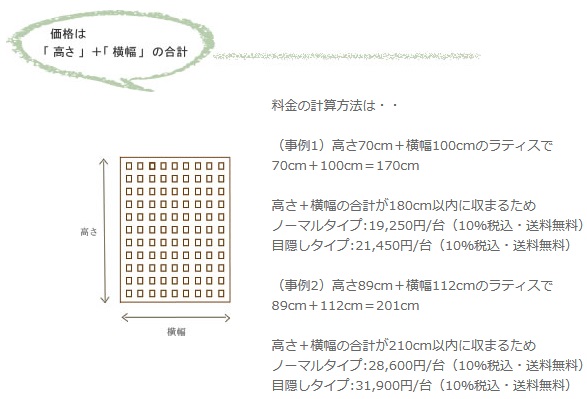 特注ラティスフェンス匠(ノーマルタイプ)ななめ格子・パイン色/高さ+横幅=合計270cm以内(2台10%割引・3台以上20%割引:ご注文後に割引)